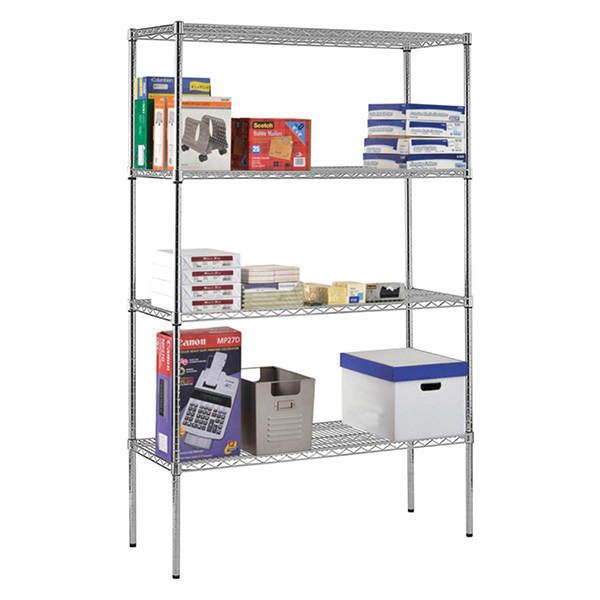 Composed of 4 wire shelves and 4 posts.